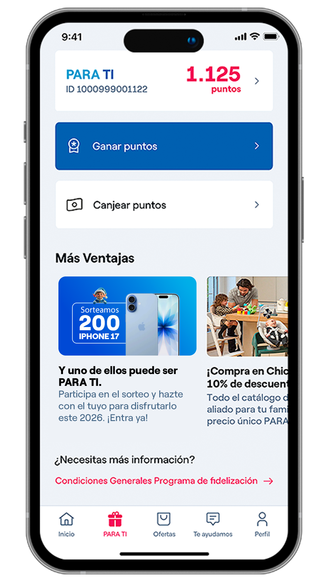 PARA TI es el programa de fidelización gratuito de Endesa Energía. Como cliente, puedes acceder y ganar puntos que podrás canjear por ahorro en tus facturas de luz y/o gas, descuentos en empresas colaboradoras y acceso a sorteos exclusivos. Podrás registrarte desde tu Área Privada de Endesa.com o desde la App Endesa Clientes, disponible para descargar tanto en la App Store de Apple como en la Play Store de Google